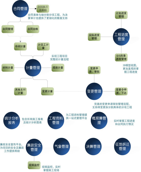 海特高等級(jí)公路多項(xiàng)目建設(shè)項(xiàng)目管理大數(shù)據(jù)云平臺(tái)是海特科技在交通工程建設(shè)信息化領(lǐng)域建設(shè)多年的開發(fā)成果,它沉淀了海特作為交通工程建設(shè)信息化供應(yīng)商多年來所積累的豐富經(jīng)驗(yàn),該平臺(tái)主要為項(xiàng)目業(yè)主及各層參與單位投資、建設(shè)、運(yùn)營(yíng)、養(yǎng)護(hù)多個(gè)工程項(xiàng)目的復(fù)雜管理過程而定制,旨在建立一個(gè)現(xiàn)代化、務(wù)實(shí)、高效的信息化管理平臺(tái),確保高質(zhì)量、低成本的完成項(xiàng)目業(yè)主及各層參與單位的管理工作。該平臺(tái)包括項(xiàng)投資管理、質(zhì)量管理、安全管理、文檔管理、進(jìn)度管理、辦公自動(dòng)化六大功能模塊,并提供了基于BIM的綜合分析決策支持應(yīng)用模塊,能完成項(xiàng)目業(yè)主及各層參與單位對(duì)一個(gè)或多個(gè)公路工程項(xiàng)目項(xiàng)目建設(shè)全過程的管理,尤其對(duì)項(xiàng)目整個(gè)過程費(fèi)用、質(zhì)量、進(jìn)度等數(shù)據(jù)統(tǒng)計(jì)和分析。從而達(dá)到項(xiàng)目業(yè)主及各層參與單位對(duì)各項(xiàng)目投資、建設(shè)、運(yùn)營(yíng)的有效管理和控制的目標(biāo)。